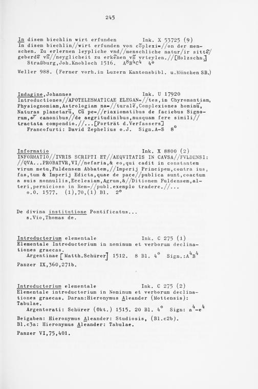 Alphabetisches Verzeichnis der Gießener Postinkunabeln