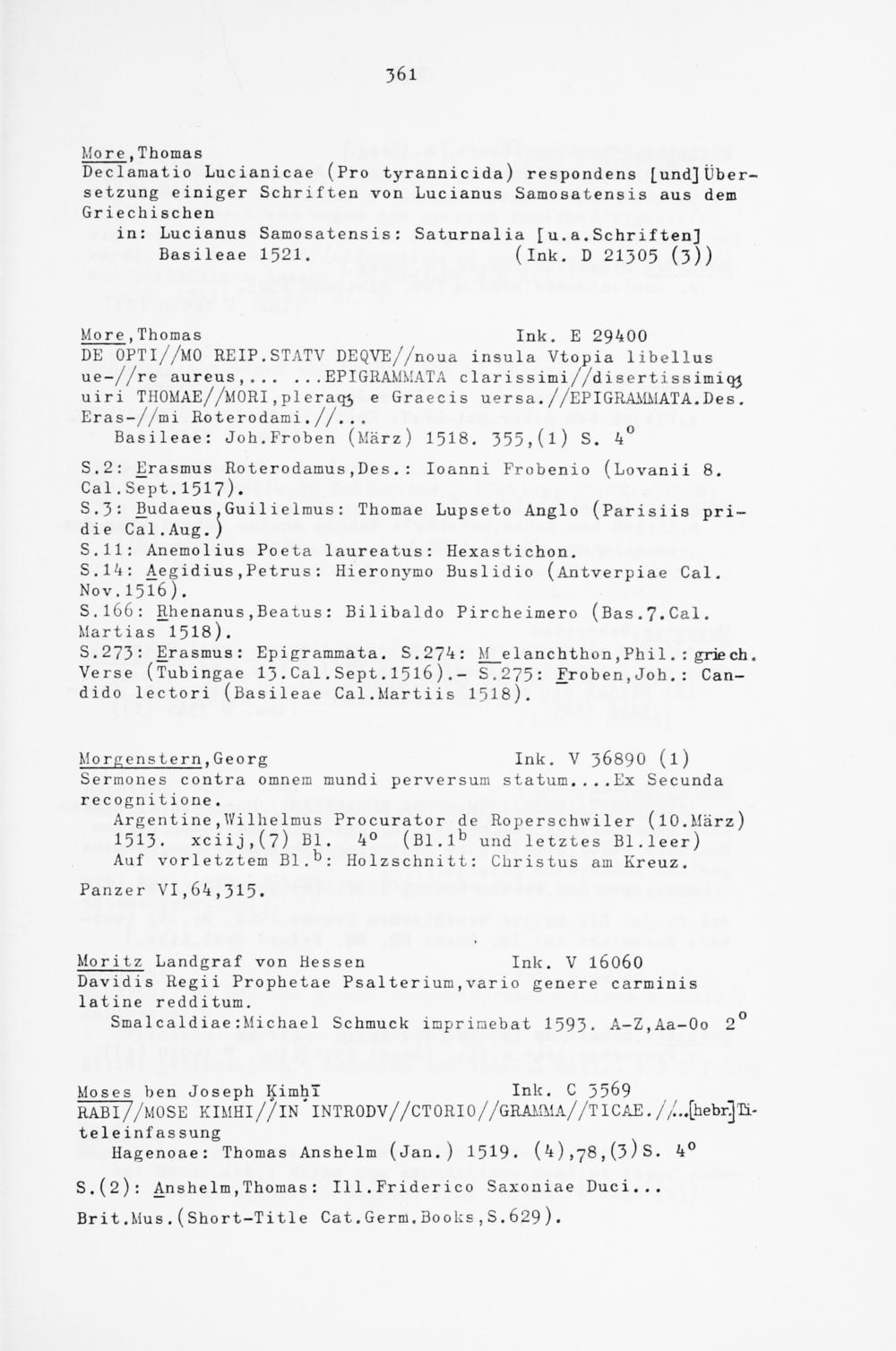Alphabetisches Verzeichnis der Gießener Postinkunabeln