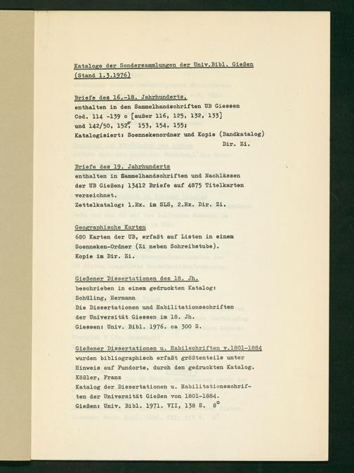 Kataloge der Sondersammlungen der Univ. Bibl. Gießen
