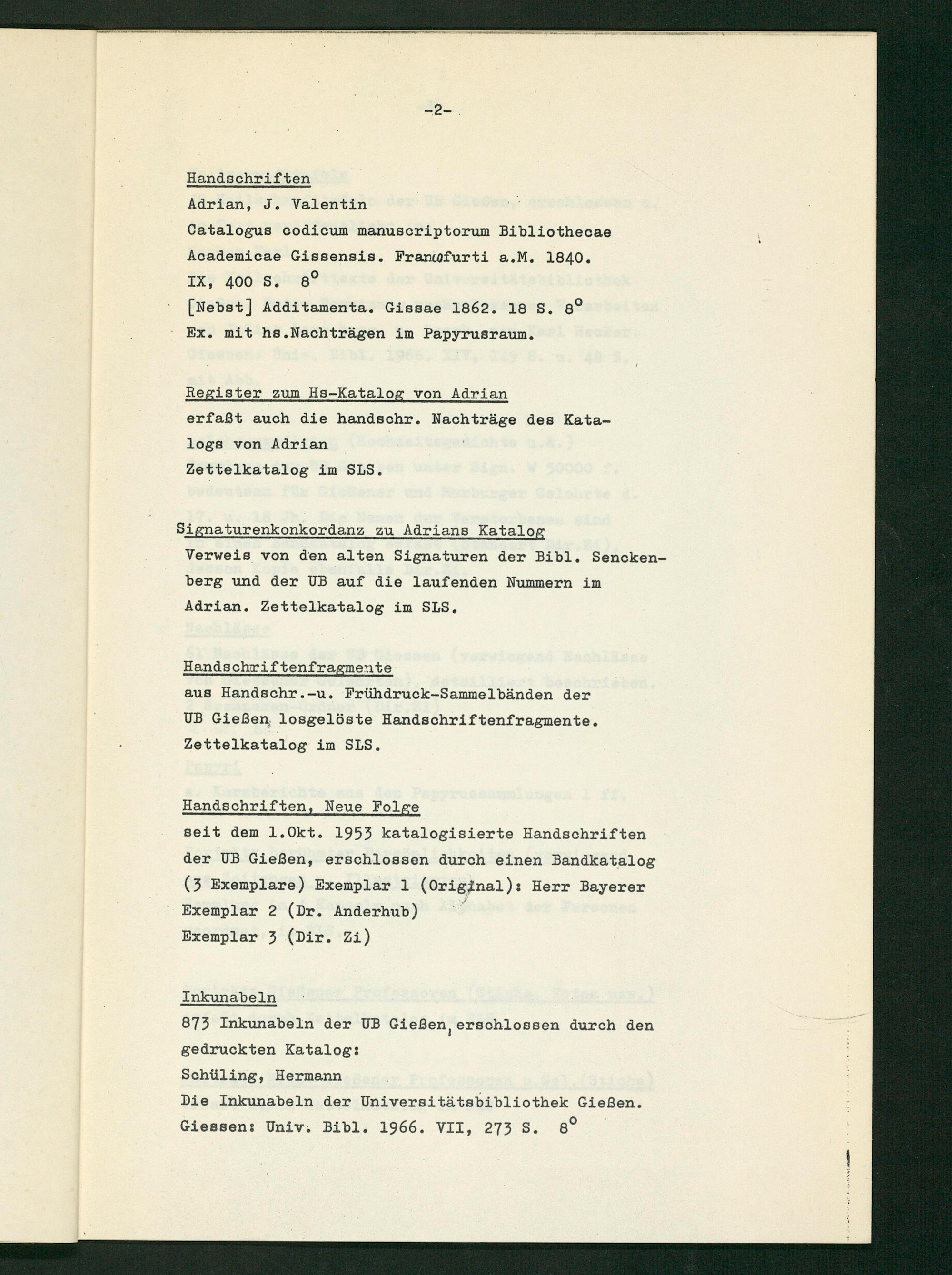 Kataloge der Sondersammlungen der Univ. Bibl. Gießen