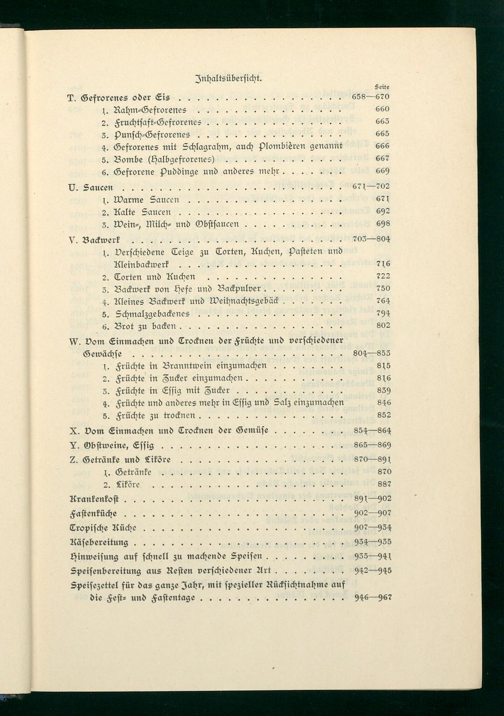 V. Backwerk.................. 1. Verſchiedene Ceige zu TCorten, Kuchen, Paf ſteten und Kleinbackwert.................. 2. GCorten und Kuchen............... 3. Backwerk von Hefe und Backpulver......... 4. Kleines Backwerk und Weihnachtsgebäck....... 5