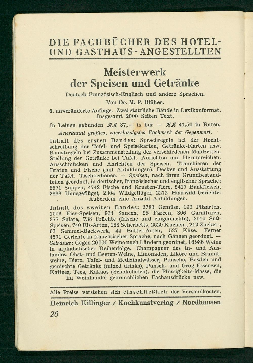 Heinrich Killinger/ Kochkunstverlag/ Nordhausen 26