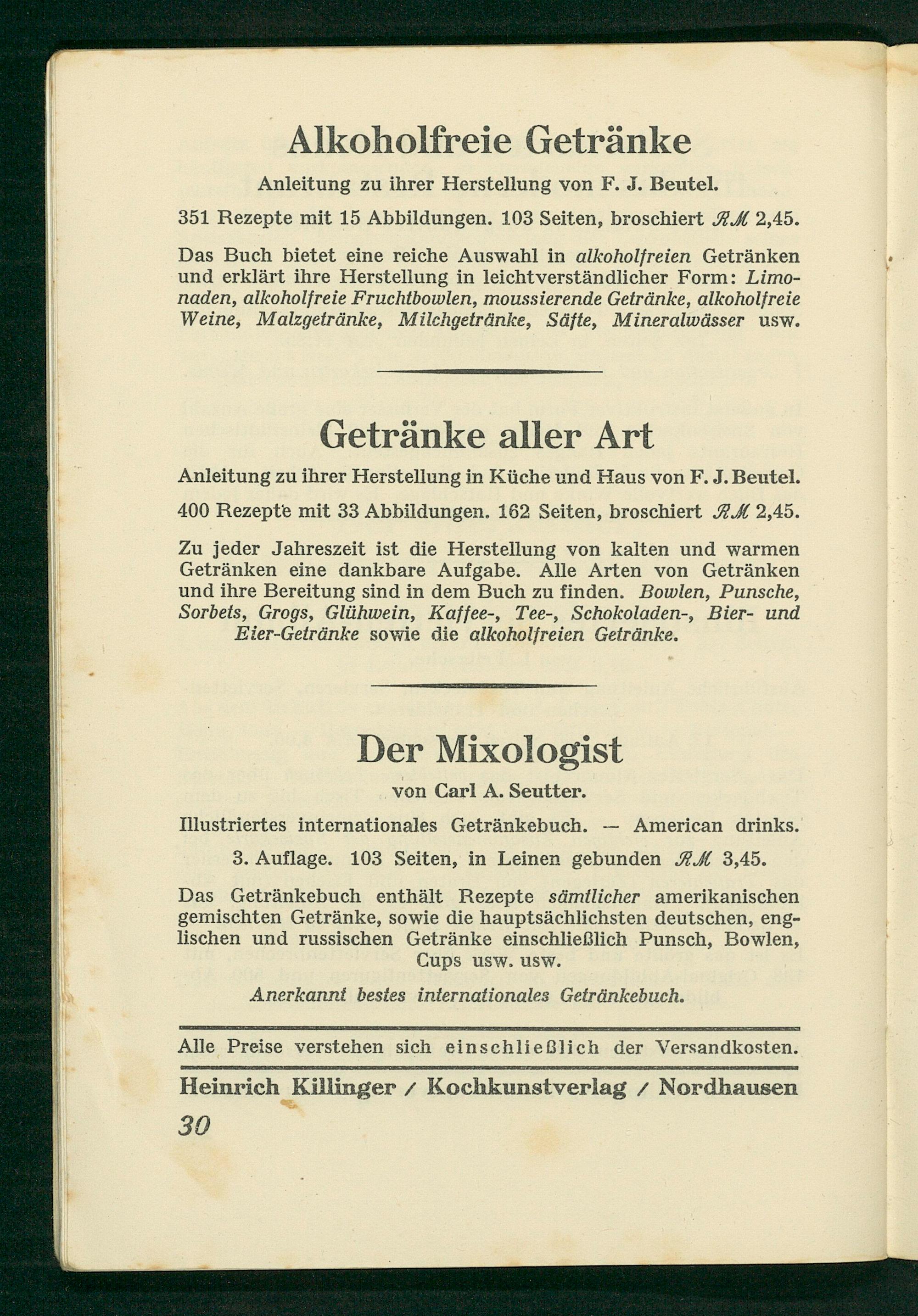 Heinrich Killinger„ Kochkunstverlag/ Nordhausen 30
