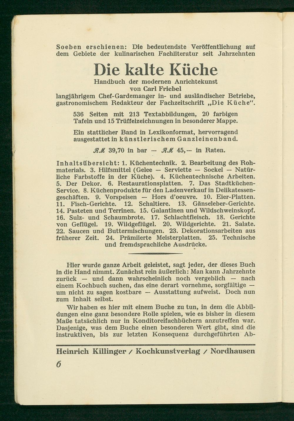 Betrachtungen über das Menu