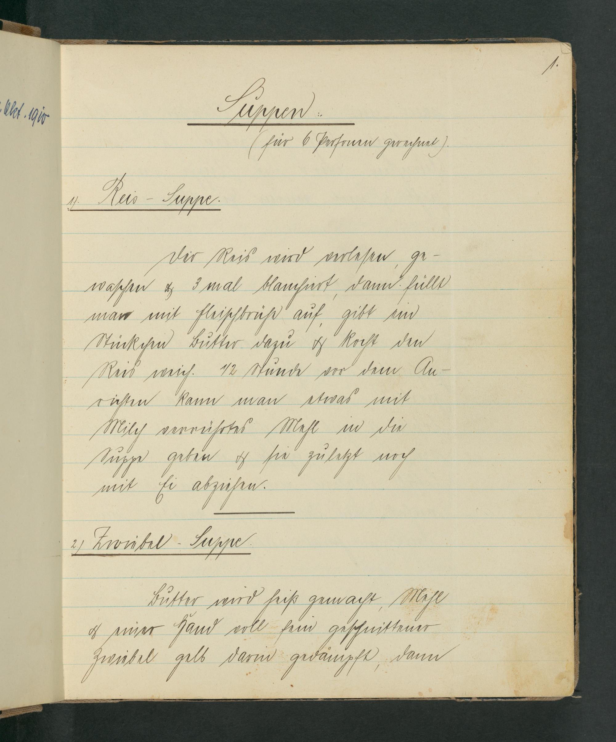 UB Gießen, Hs NF 856 - Kochbuch : Kochkurs vom 19. Sept.-31. Okt. 1910 : [Kochschule bei Fräulein Nüssle]. - UB Gießen, Hs NF 856 / Mathilde Betz