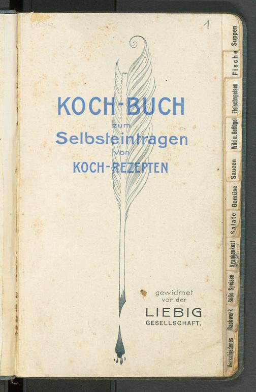Koch-Buch zum Selbsteintragen von Kochrezepten gewidmet von der Liebig Gesellschaft