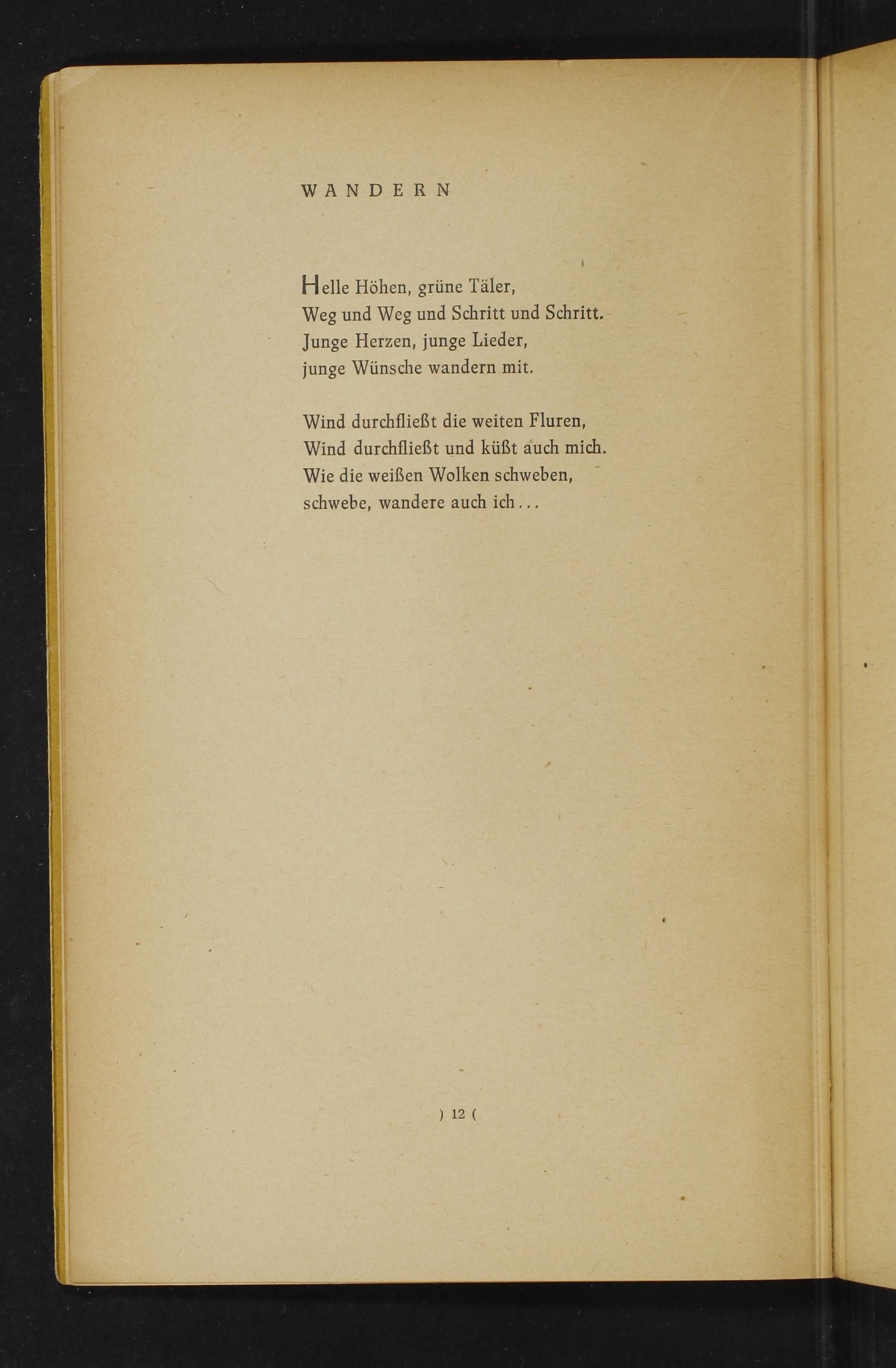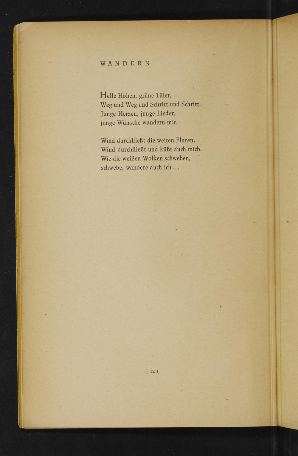 Helle Höhen, grüne Täler, Weg und Weg und Schritt und Schritt. Junge Herzen, junge Lieder,