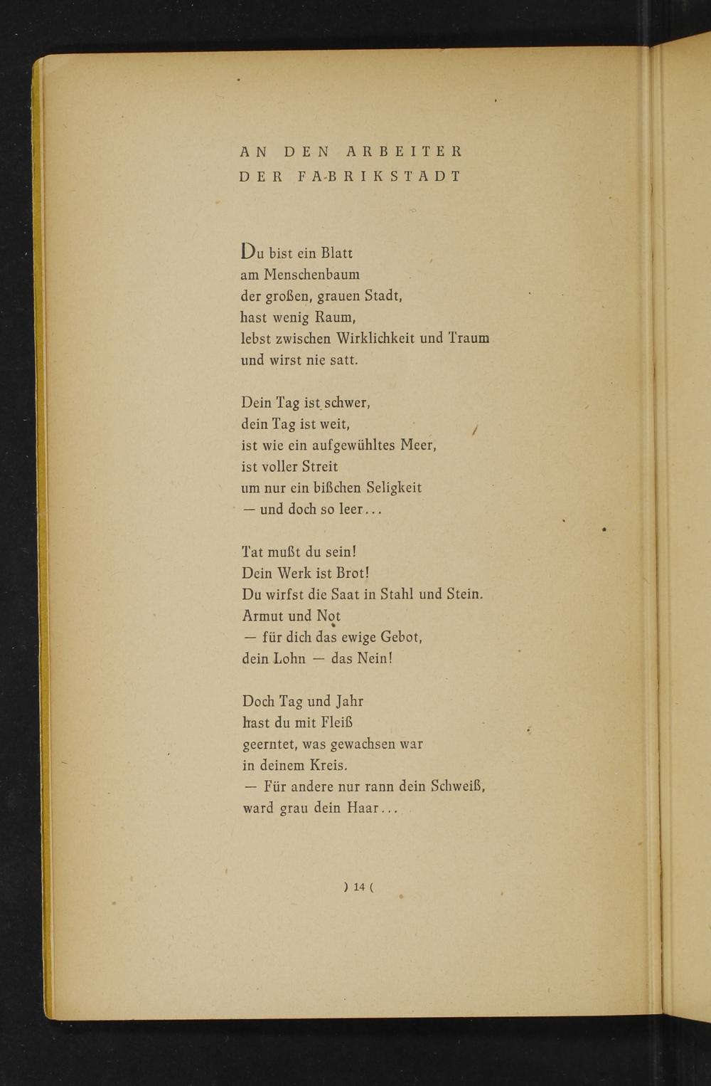 Du wirfst die Saat in Stahl und Stein. Armut und Not