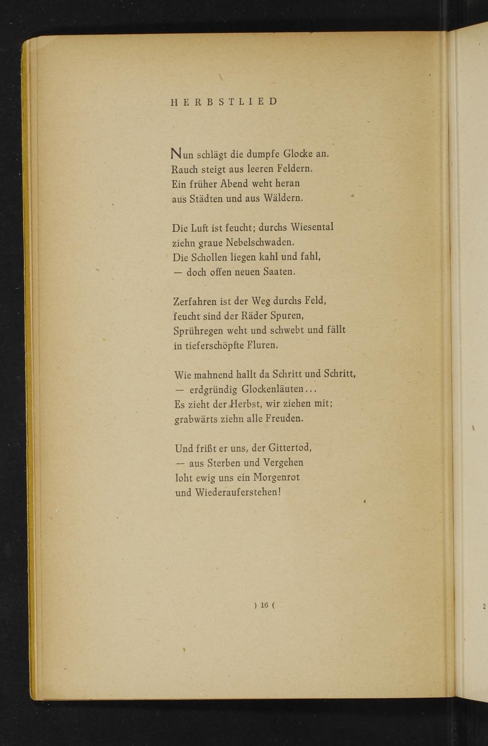 Zerfahren ist der Weg durchs Feld, feucht sind der Räder Spuren, Sprühregen weht und schwebt und fällt in tieferschöpfte Fluren.