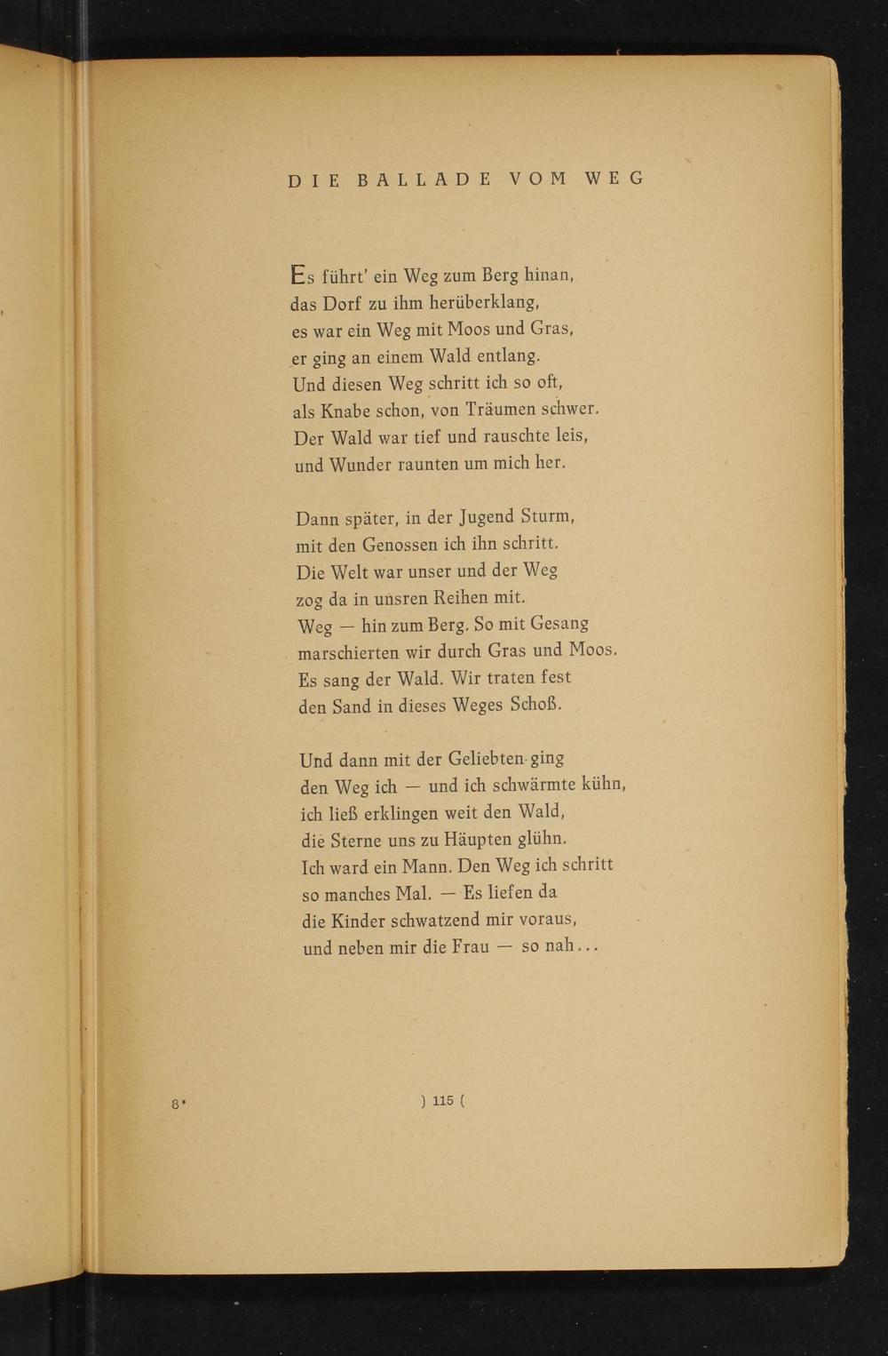 ich ließ erklingen weit den Wald, die Sterne uns zu Häupten glühn. Ich ward ein Mann. Den Weg ich schritt so manches Mal.— Es liefen da