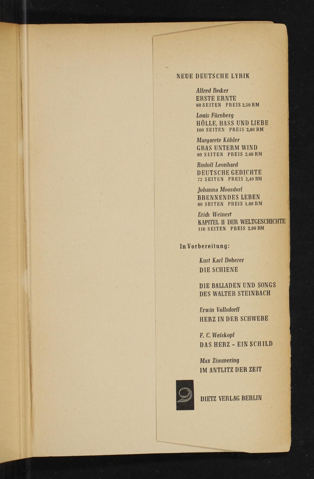 BRENNENDES LEBEN 60 SEITEN PREIS 1,80 RM Erich Weinert\