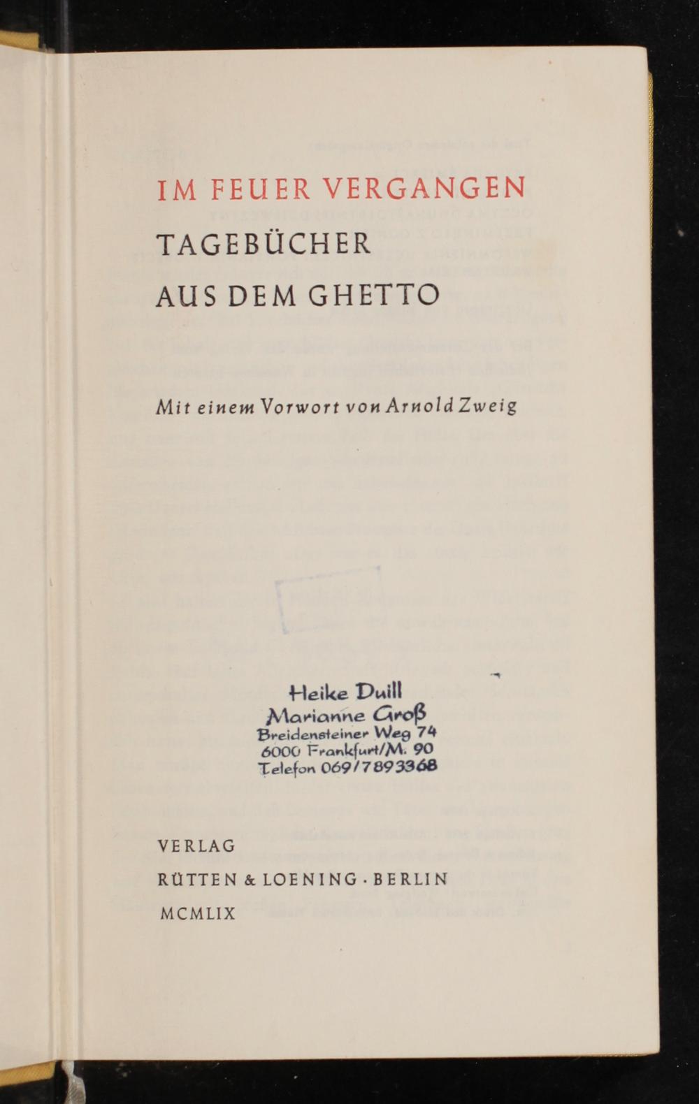 Marianne Groß Breidensteiner Weg 74 6000 Frankfurt/M. 90 Telefon 069/7893368