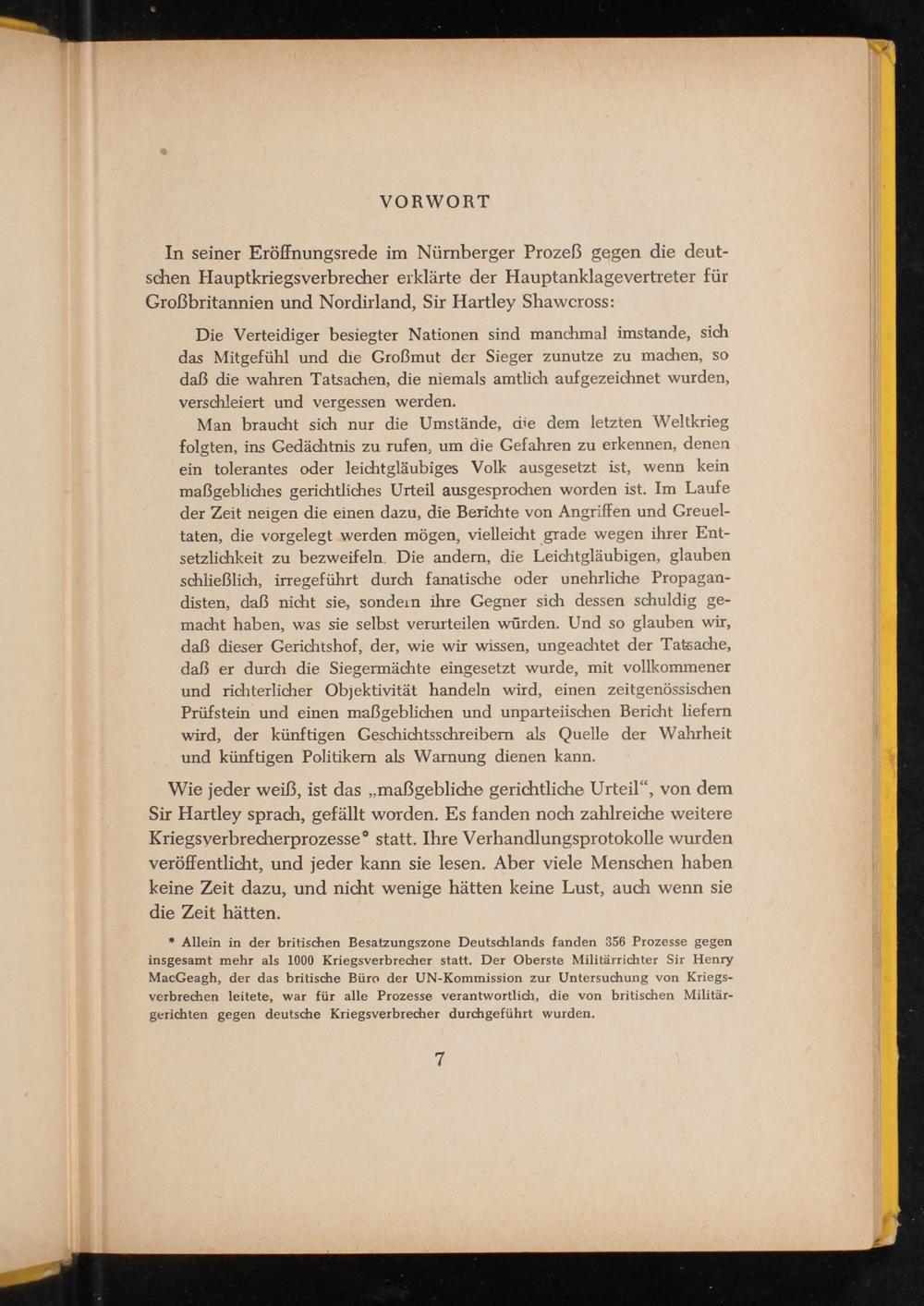 * Allein in der britischen Besatzungszone Deutschlands fanden 356 Prozesse gegen insgesamt mehr als 1000 Kriegsverbrecher statt. Der Oberste Militärrichter Sir Henry MacGeagh, der das britische Büro der UN-Kommission zur Untersuchung von Kriegs-