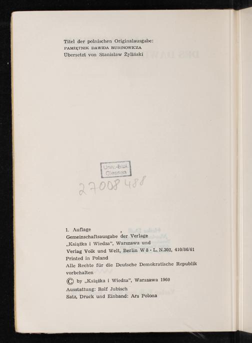 Ausstattung: Rolf Jubisch Satz, Druck und Einband: Ars Polona