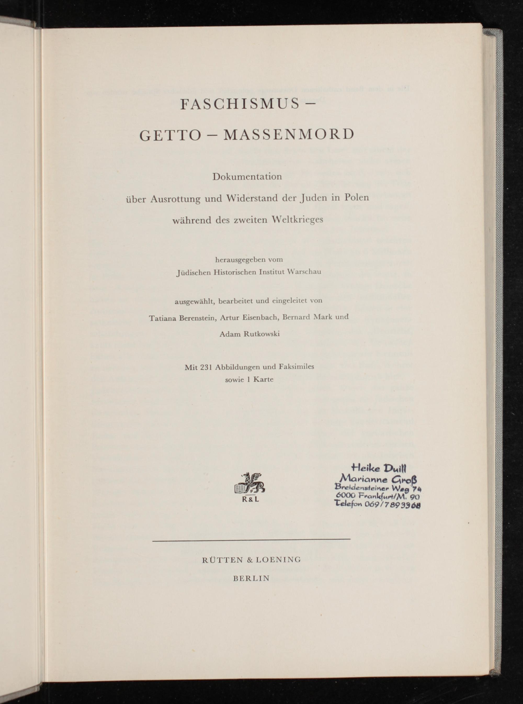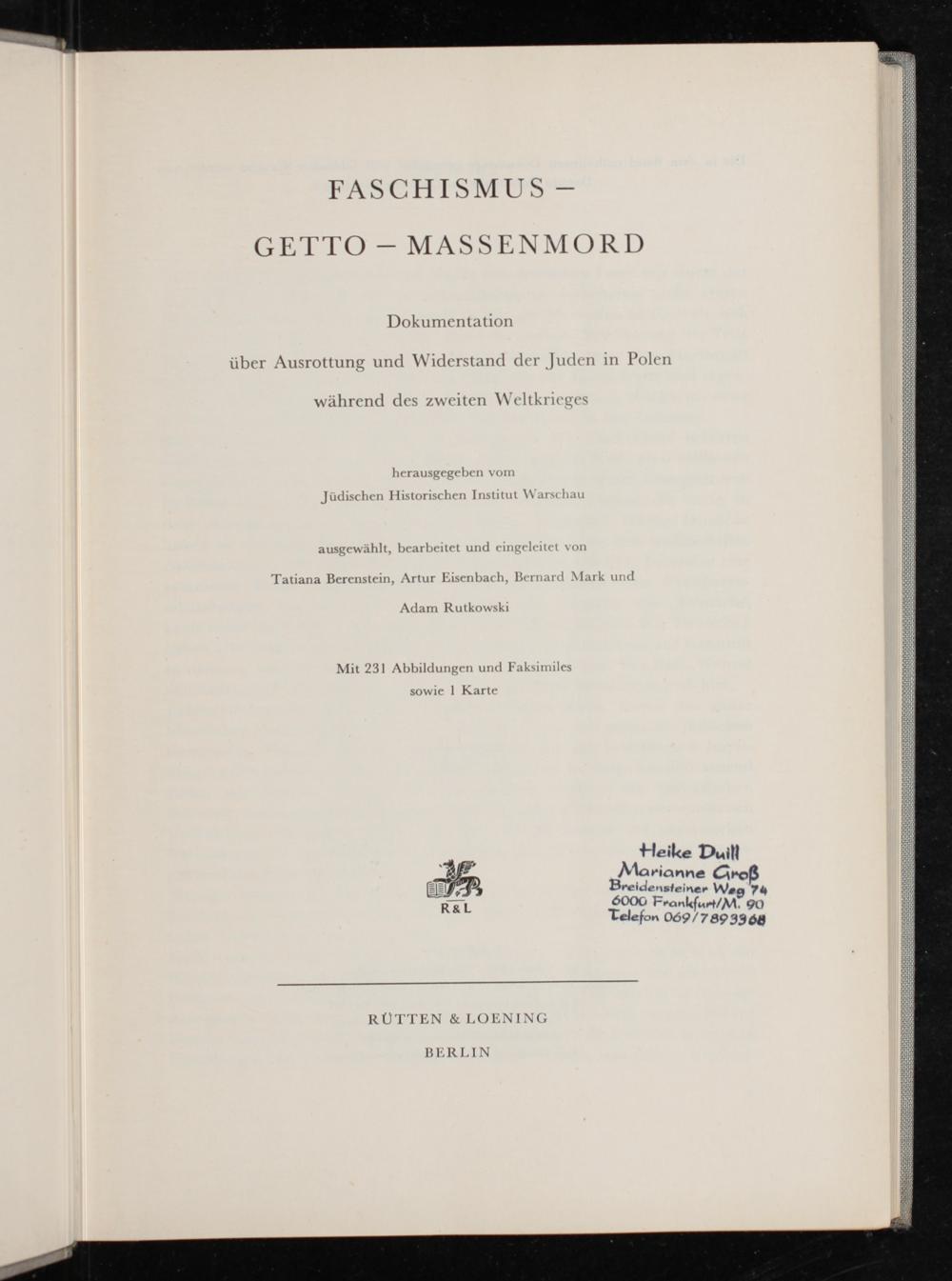 ausgewählt, bearbeitet und eingeleitet von Tatiana Berenstein, Artur Eisenbach, Bernard Mark und