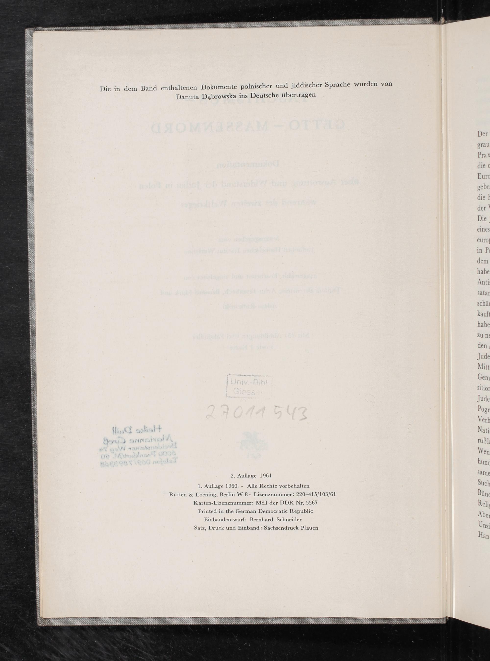 Die in dem Band enthaltenen Dokumente polnischer und jiddischer Sprache wurden von Danuta Dabrowska ins Deutsche übertragen