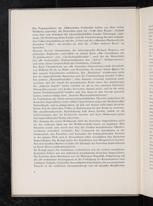 fast alle bedeutenden Kulturschöpfungen den„Ariern‘‘“(Indogermanen), mög und unter diesen hauptsächlich den Germanen, verdanke. Arb Das Buch Chamberlains hat alle deutschen Chauvinisten stark beeinflußt, hattı