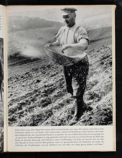 ‚In dieser Zeit, da Gewalttätigkeit in Lüge gekleidet unheimlich wie noch nie auf dem Throne der Welt sitzt, bleibe ich dennoch überzeugt, daß Wahrheit, Liebe, Friedfertigkeit und Güte die Gewalt sind, die über aller Gewalt ist. Ihnen wird die Welt gehören, wenn nur genug Menschen die Gedanken der Liebe, der Wahrheit, der Friedfertigkeit und der Sanftmut rein und stark und stetig genug denken und leben.”