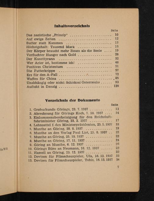 Inhaltsverzeichnis Seite Basenazistische,„EEINZIDY nn. nee anne 10 PIIWEWIBERZEILEN.„a een eg aneneh en 12 Buster=statt Kanonen#2. 2. Ne... ee 13 Eiochsteehalt: Tausend Mark.,........ nn 16 Der Körper braucht mehr Raum als die Seele.... 19 Nertluchter. Hunser nach Gold’..............0.. 28 DERFRSUNSTLITANN ea ee sa een 32 er Arier ist; bestimme ich!........ 2. Sun. 0200:, 46 EBosutivesiChristentum........n un. ea no Sara 51 Wieskutterkripne.......::.20nu.. ne 57 EirzktundenyA-Rallen 2. nu ne 72 Vattenstursehlnar"8 un. 20.1.0: See Se ae„85 Unabhängig oder nicht: Schicksal Österreichs...... 93 Aiiktaktın Danzig... nee Seiner 120 Verzeichnis der Dokumente