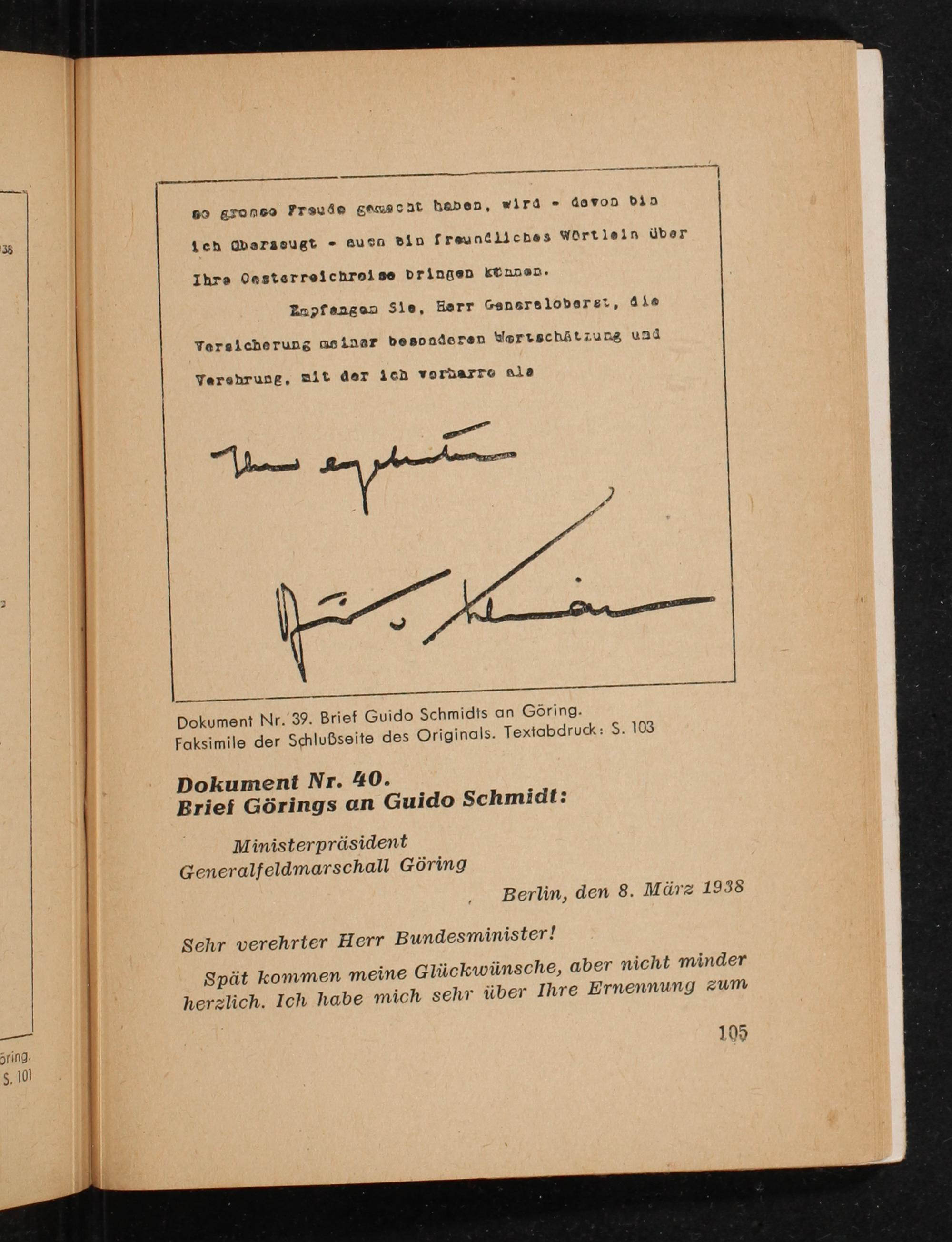 Dokument Nr. 40. Brief Görings an Guido Schmidt: