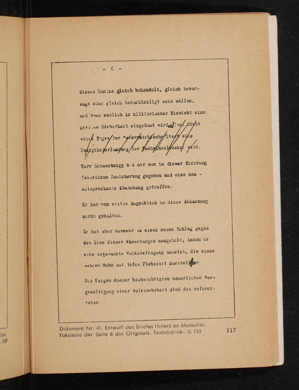 Dokument Nr. 41. Entwurf des Briefes Hitlers an Mussolini. Faksimile der Seite 6 des Originals. Textabdruck: S. 110