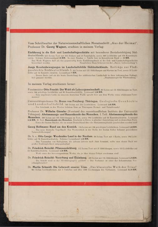 Universitätsprofessor Dr. Bruno von Freyberg: Thüringen. Geologische Geschichte undLandschaftsbild. 160 Seiten mit 252 Lichtbildern. Leinwand 3,85 RM. ...„ Ein Geschenk in des Wortes tiefstem Sinn an Thüringens Heimat- und Naturfreunde!
