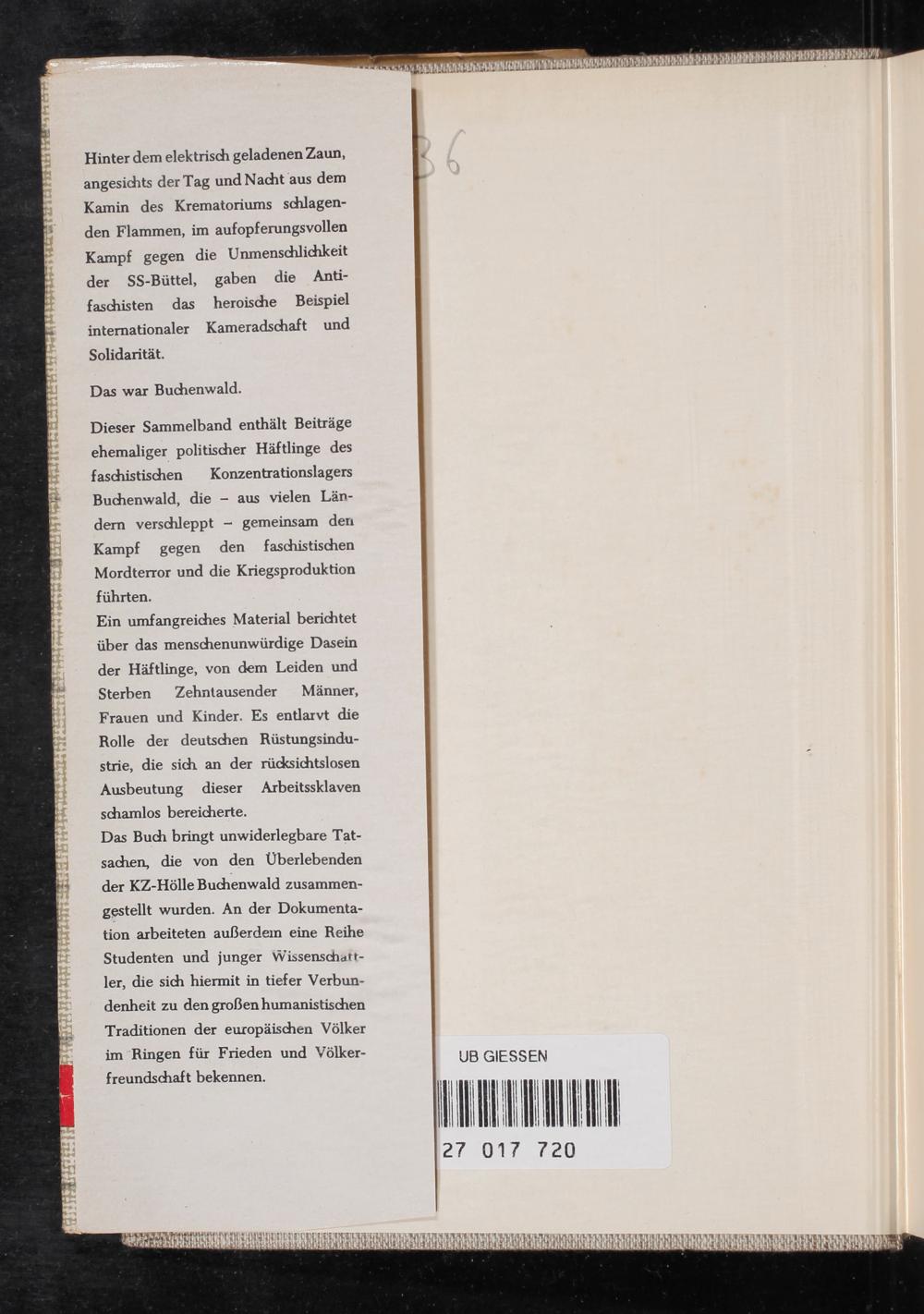 Das Buch bringt unwiderlegbare Tat- sachen, die von den Überlebenden der KZ-Hölle Buchenwald zusammen- gestellt wurden. An der Dokumenta-