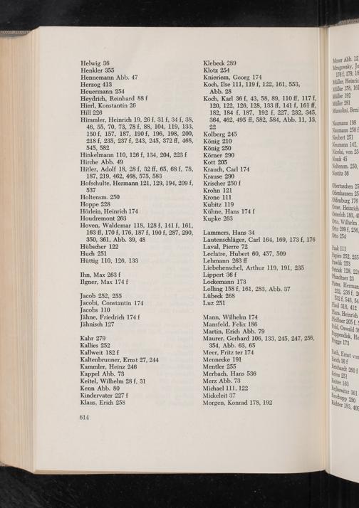 Himmler, Heinrich 19, 26 f, 31£, 34 f, 38, 46, 55, 70, 73, 78 f, 88, 104, 119, 133, 150£, 157, 187, 190 f, 196, 198, 200, 218, 235, 237 f, 248, 245, 372 fi, 468, 545, 582