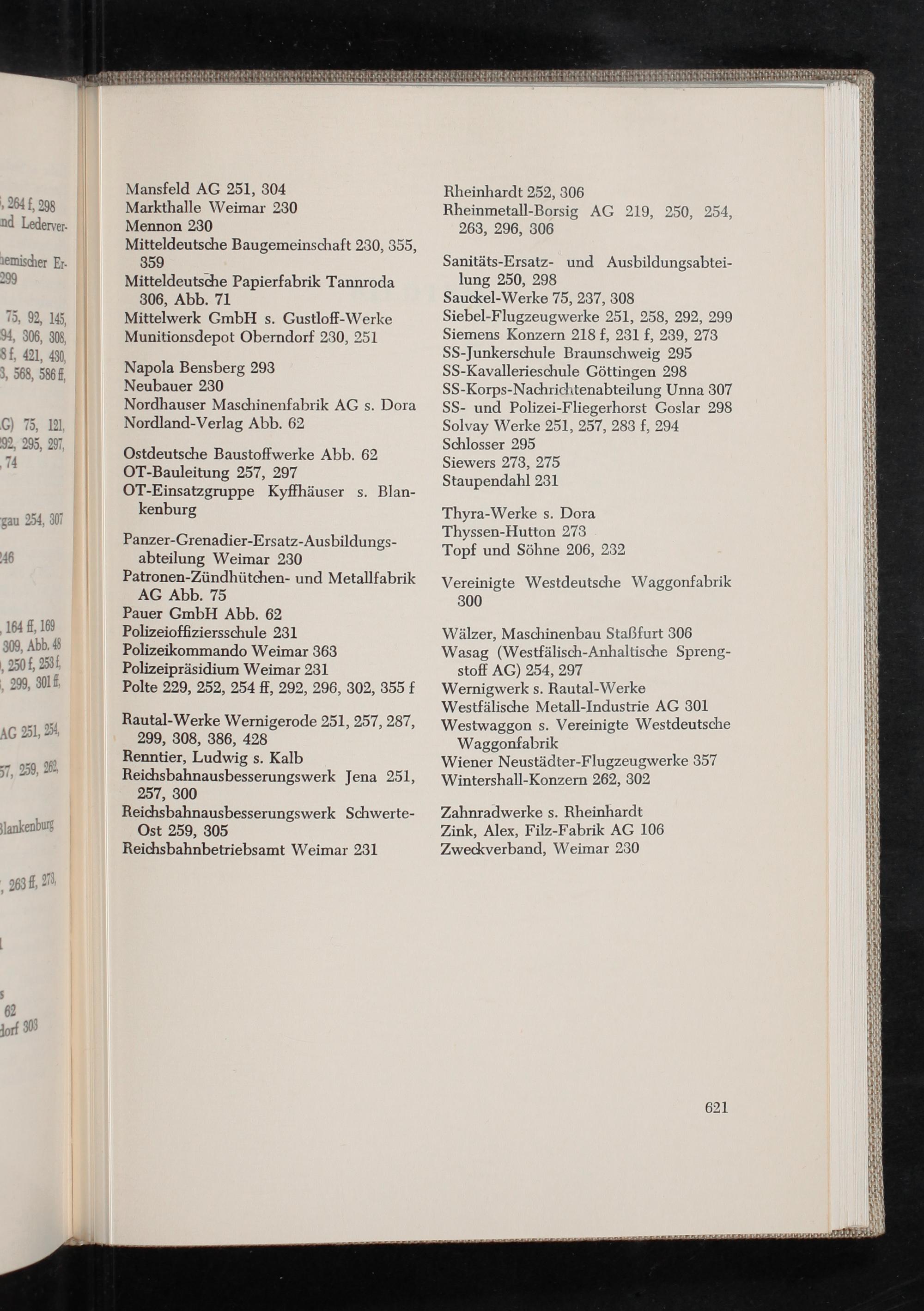 Zahnradwerke s. Rheinhardt Zink, Alex, Filz-Fabrik AG 106 Zweckverband, Weimar 230