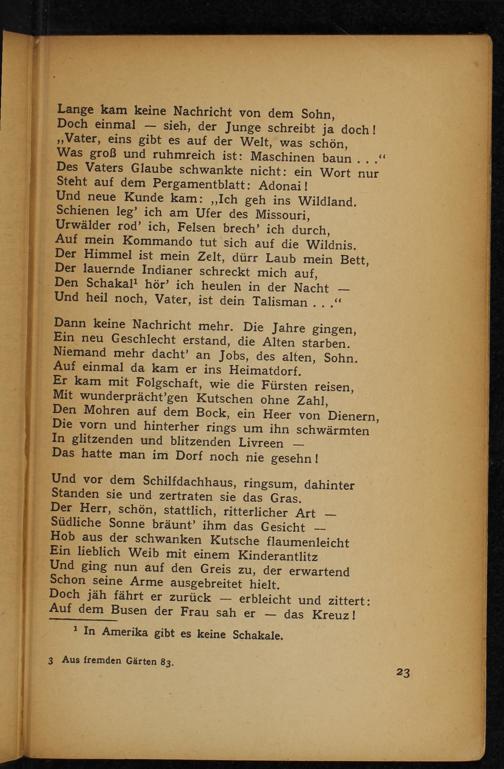 Was groß und ruhmreich ist: Maschinen baun su Des Vaters Glaube schwankte nicht: ein Wort nur Steht auf dem Pergamentblatt: Adonai!