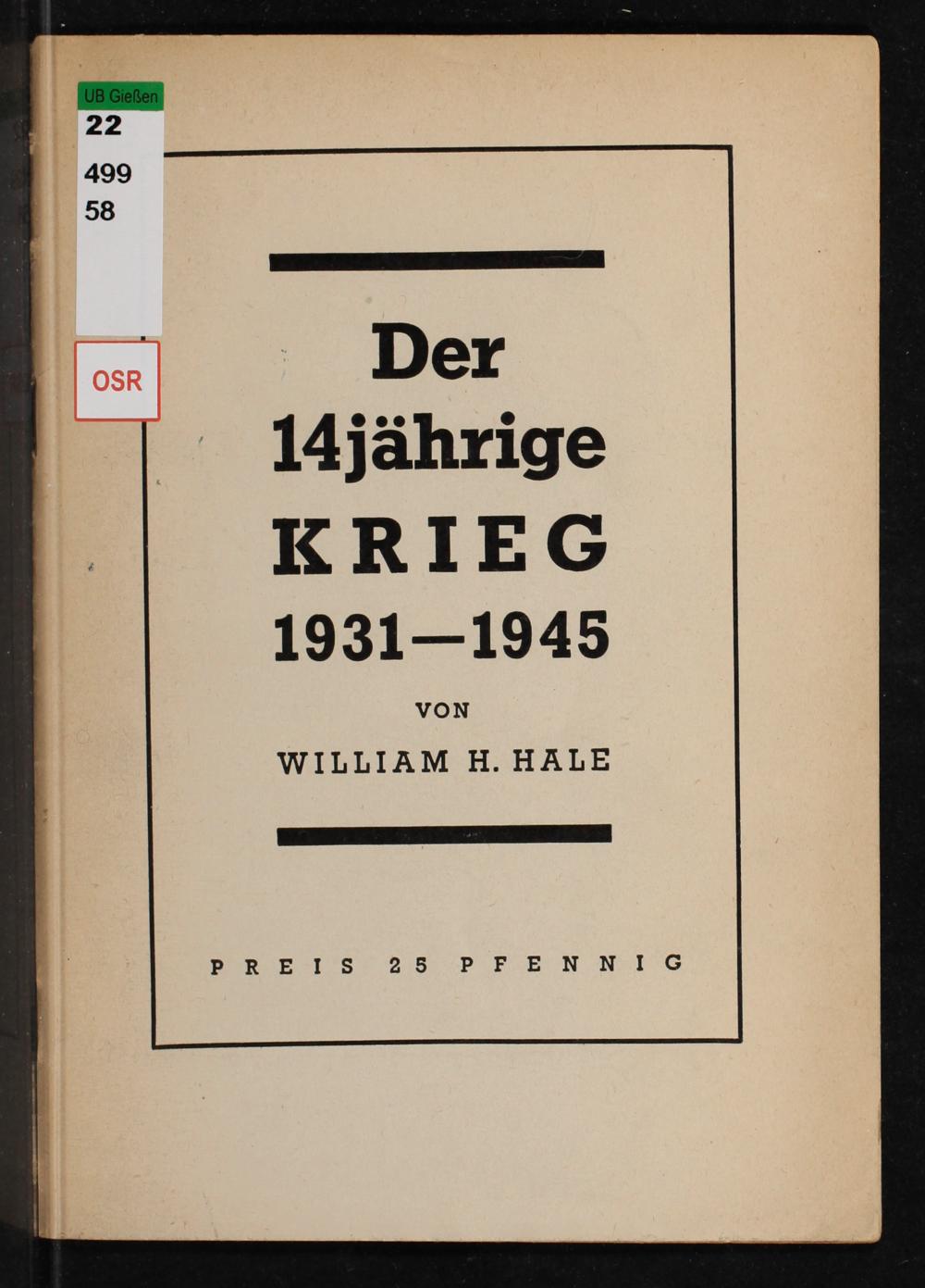 Der 14jährige Krieg 1931 - 1945 / von William H. Hale ; herausgegeben im Auftrag von Information Control Division, U.S. Forces European Theater