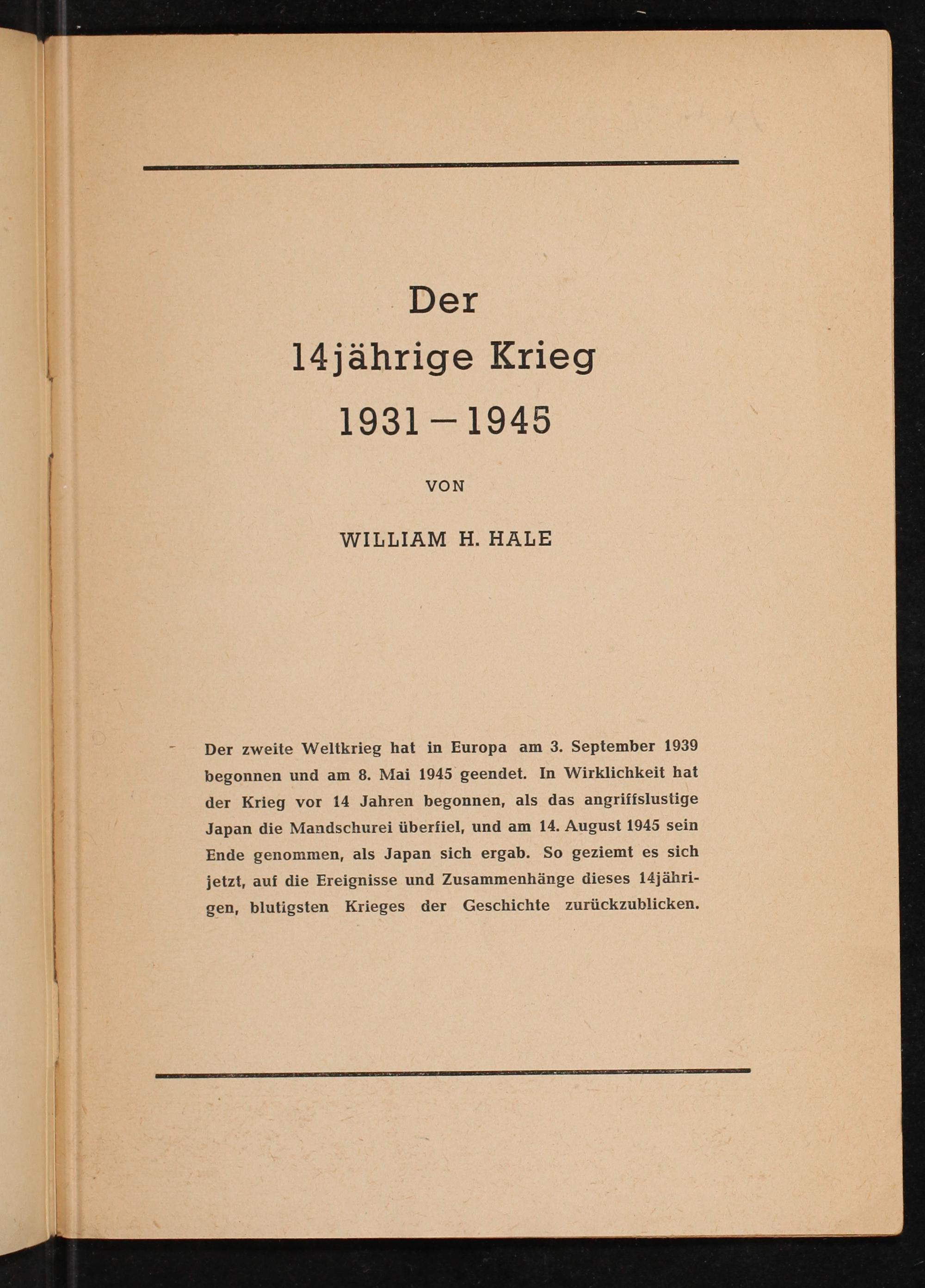 Der 14jährige Krieg 1931 - 1945 / von William H. Hale ; herausgegeben im Auftrag von Information Control Division, U.S. Forces European Theater