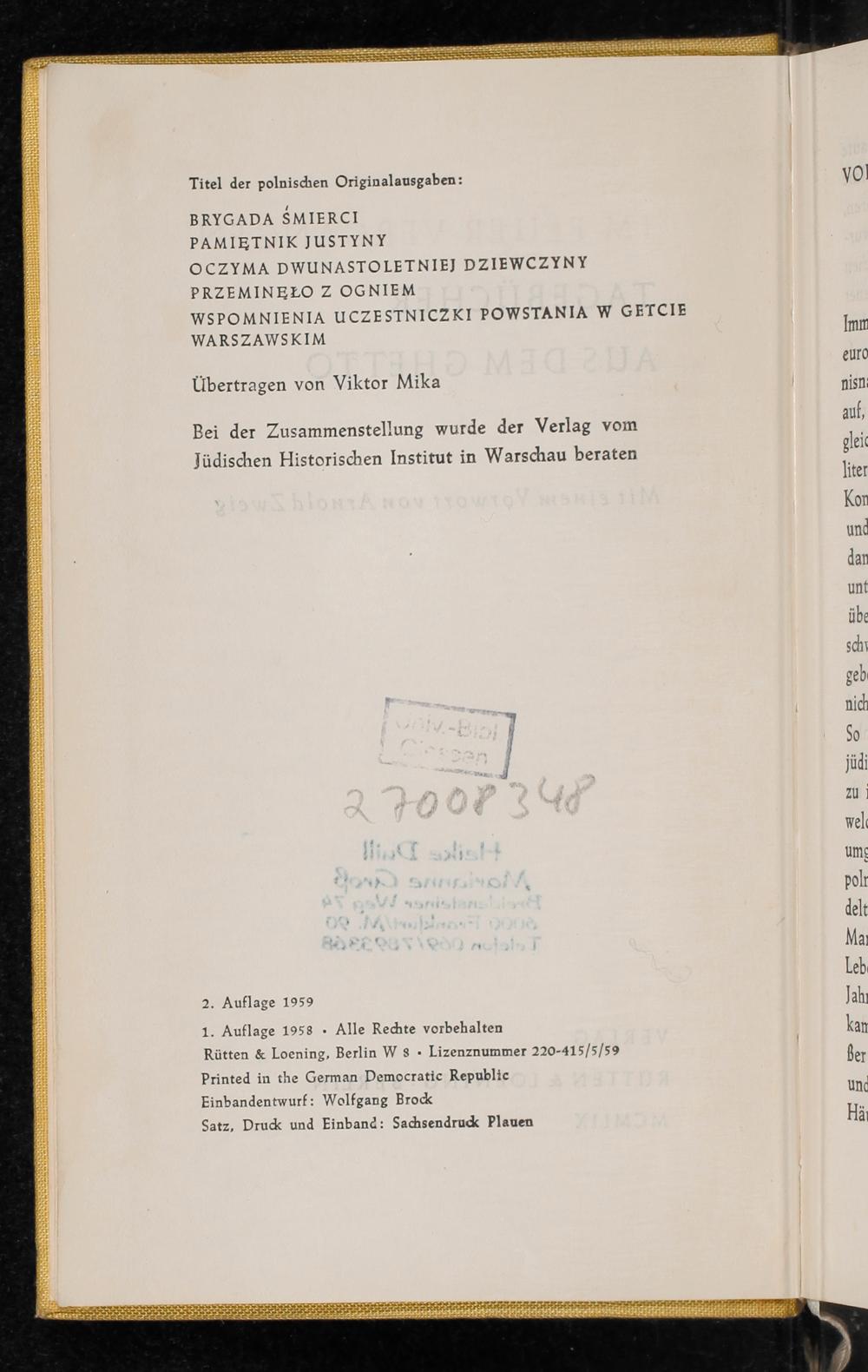Im Feuer vergangen : Tagebücher aus dem Ghetto / mit einem Vorwort von Arnold Zweig ; übertragen von Viktor Mika