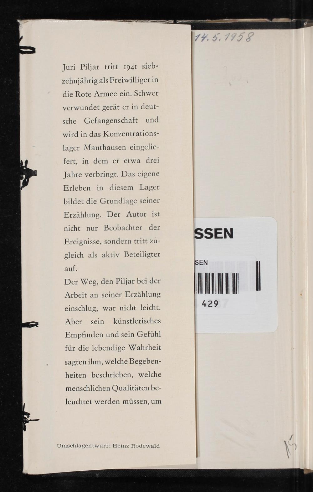 Wir bezwangen den Tod / Juri Piljar ; Deutsch von Ellen Zunk