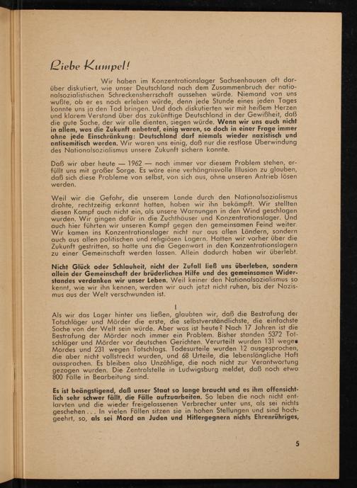 Das Gestern soll nicht das Heute bestimmen : 1945 - 1963; Vortrag auf dem Bundestreffen ehem. Sachsenhausener Häftlinge am 14. Okt. 1962 in Essen (gekürzt) / Harry Naujoks