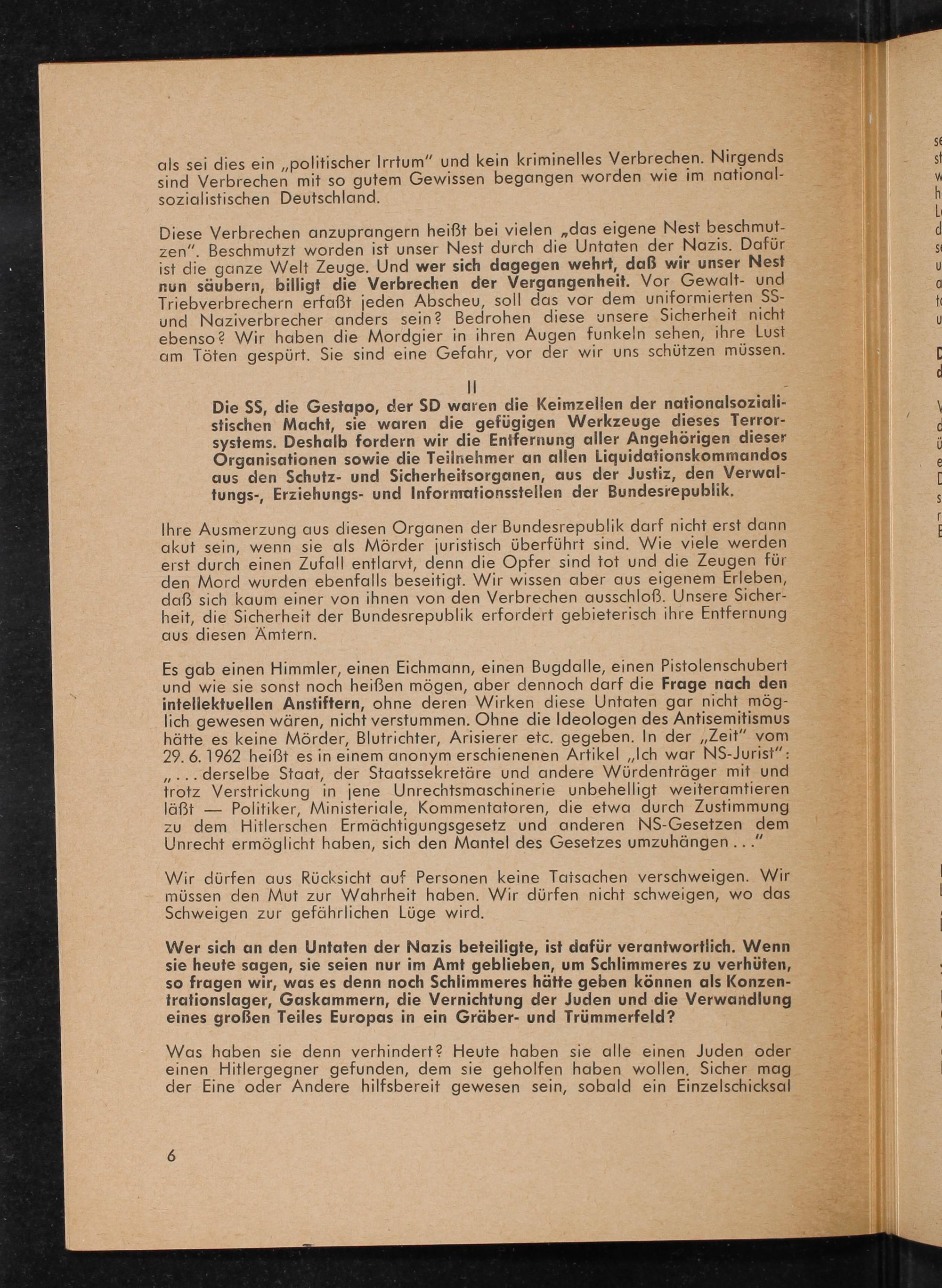 Das Gestern soll nicht das Heute bestimmen : 1945 - 1963; Vortrag auf dem Bundestreffen ehem. Sachsenhausener Häftlinge am 14. Okt. 1962 in Essen (gekürzt) / Harry Naujoks