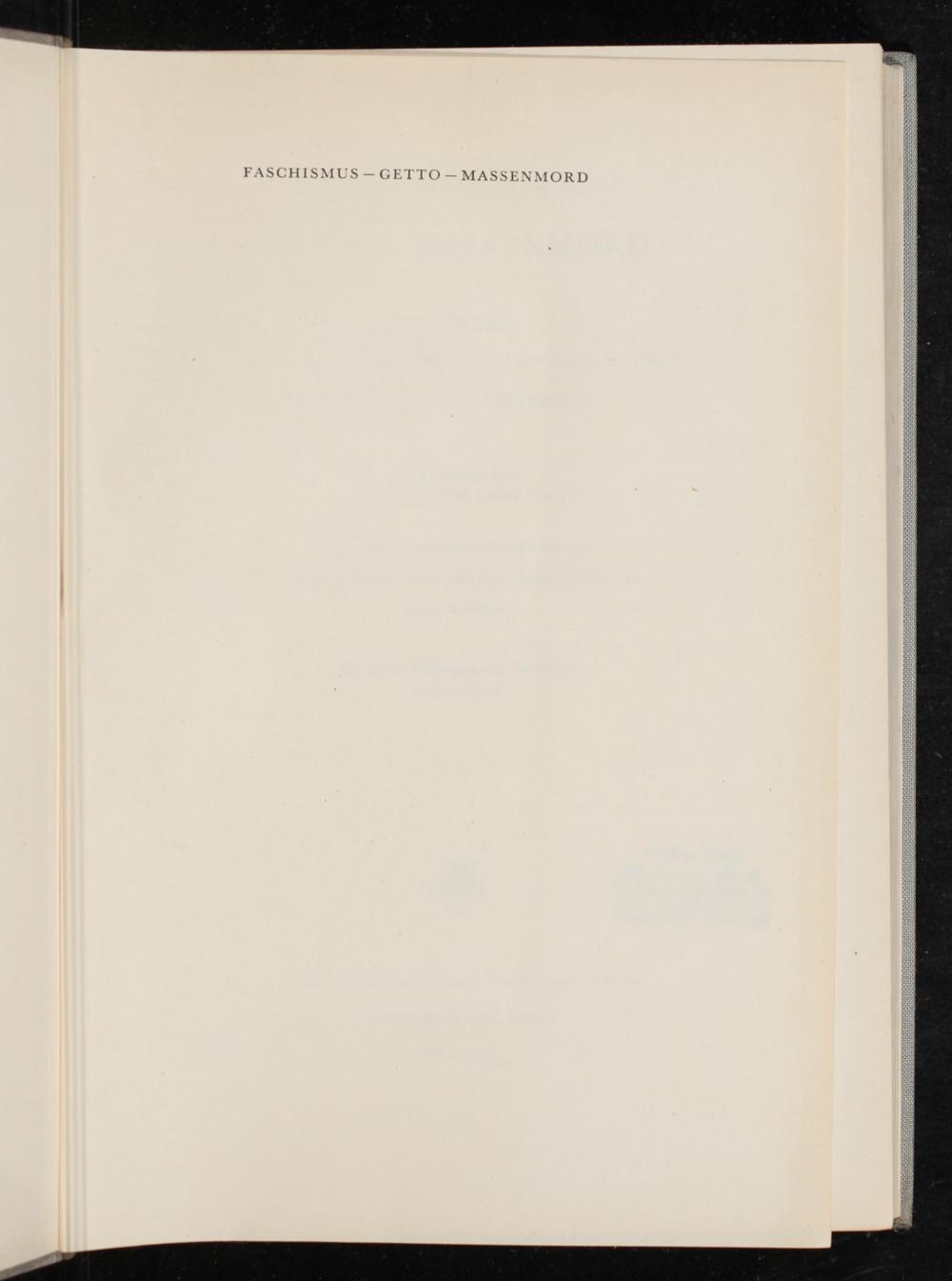 Faschismus - Getto - Massenmord : Dokumentation über Ausrottung und Widerstand der Juden in Polen während des Zweiten Weltkrieges / herausgegeben vom Jüdischen Historischen Institut Warschau. Ausgewählt, bearbeitet und eingeleitet von Tatiana Berenstein, Artur Eisenbach, Bernard Mark und Adam Rutkowski