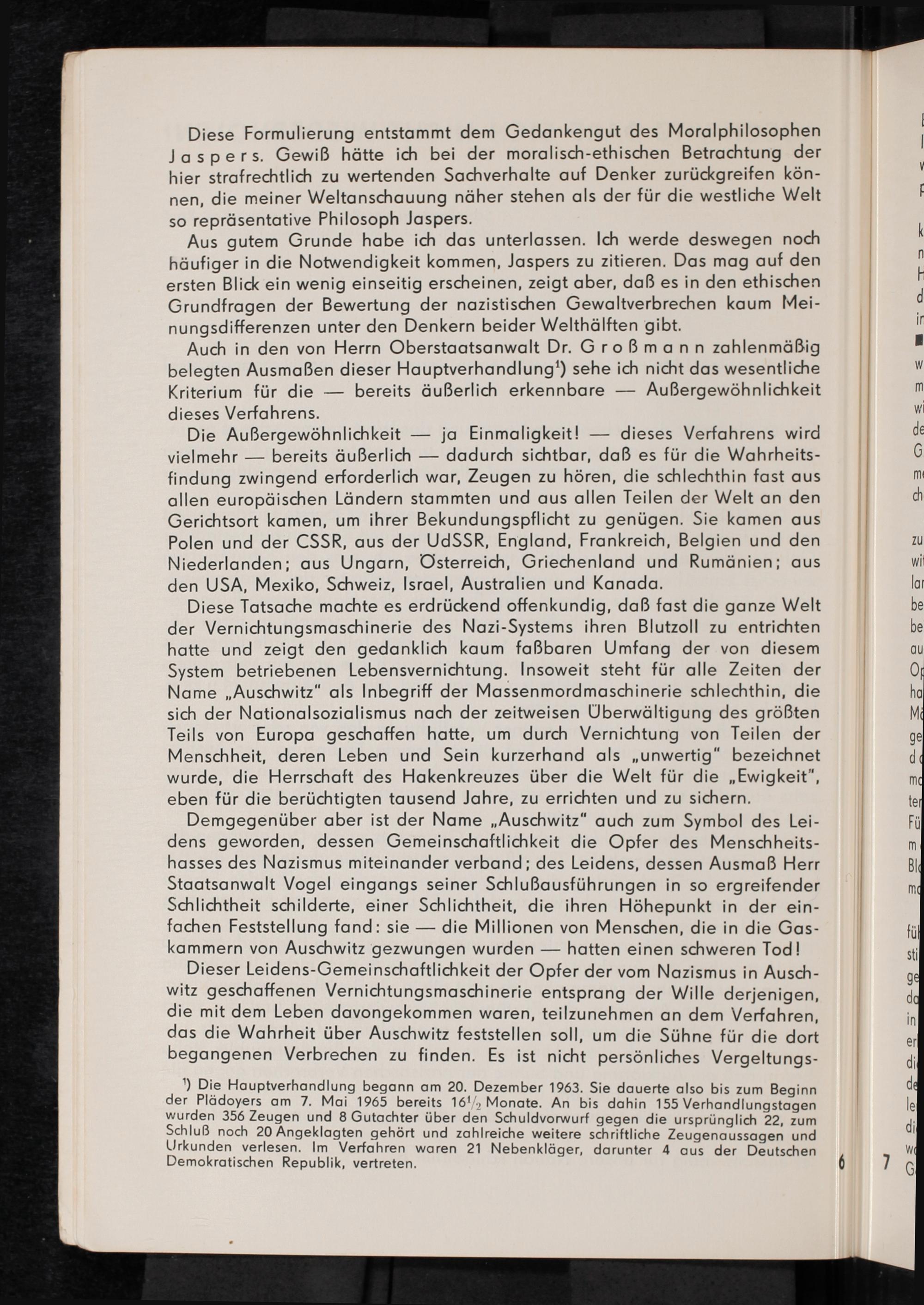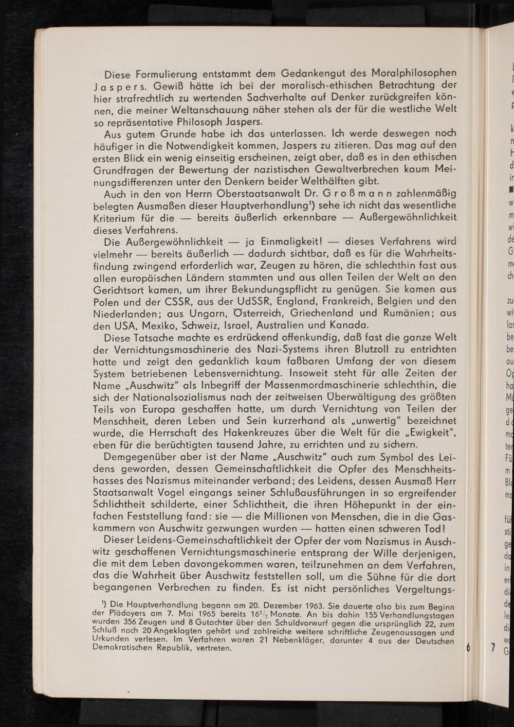 Auschwitz-Prozess Frankfurt am Main : Schlussvortrag und Erwiderung des Friedrich Karl Kaul, Prozessvertreter der in der Deutschen Demokratischen Republik ansässigen Nebenkläger im Strafverfahren gegen Mulka u.a. vor dem Schwurgericht beim Landgericht Frankfurt am Main / herausgegeben von der Arbeitsgruppe der ehemaliger Häftlinge des Konzentrationslagers Auschwitz beim Komitee der Antifaschistischen Widerstandskämpfer in der DDR und dem Nationalrat der Nationalen Front des demokratischen Deutschland