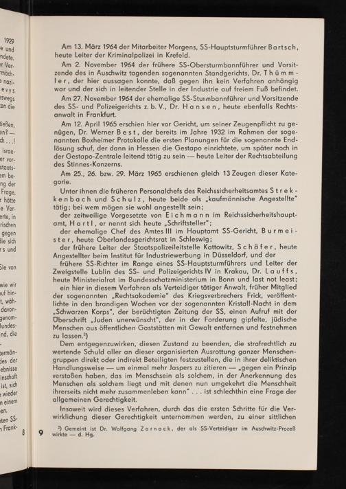 Auschwitz-Prozess Frankfurt am Main : Schlussvortrag und Erwiderung des Friedrich Karl Kaul, Prozessvertreter der in der Deutschen Demokratischen Republik ansässigen Nebenkläger im Strafverfahren gegen Mulka u.a. vor dem Schwurgericht beim Landgericht Frankfurt am Main / herausgegeben von der Arbeitsgruppe der ehemaliger Häftlinge des Konzentrationslagers Auschwitz beim Komitee der Antifaschistischen Widerstandskämpfer in der DDR und dem Nationalrat der Nationalen Front des demokratischen Deutschland