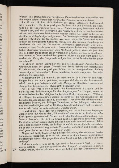 Auschwitz-Prozess Frankfurt am Main : Schlussvortrag und Erwiderung des Friedrich Karl Kaul, Prozessvertreter der in der Deutschen Demokratischen Republik ansässigen Nebenkläger im Strafverfahren gegen Mulka u.a. vor dem Schwurgericht beim Landgericht Frankfurt am Main / herausgegeben von der Arbeitsgruppe der ehemaliger Häftlinge des Konzentrationslagers Auschwitz beim Komitee der Antifaschistischen Widerstandskämpfer in der DDR und dem Nationalrat der Nationalen Front des demokratischen Deutschland