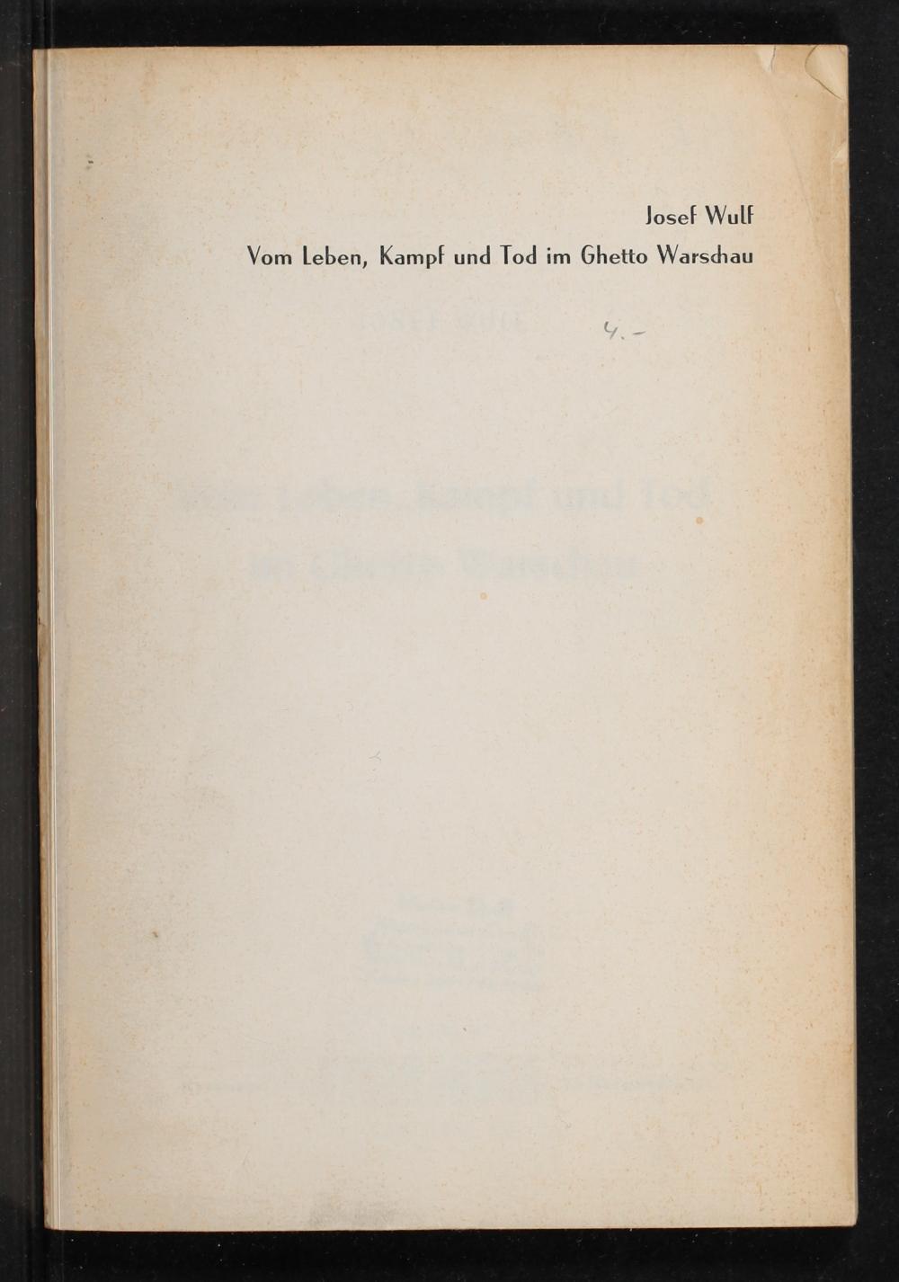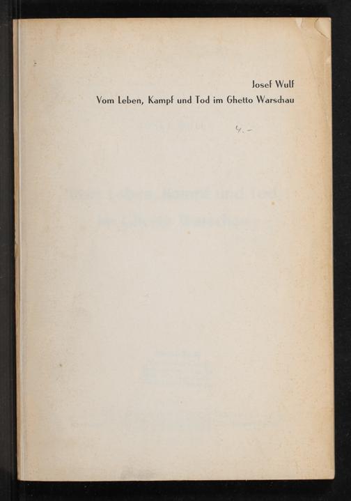 Vom Leben, Kampf und Tod im Ghetto Warschau / Josef Wulf