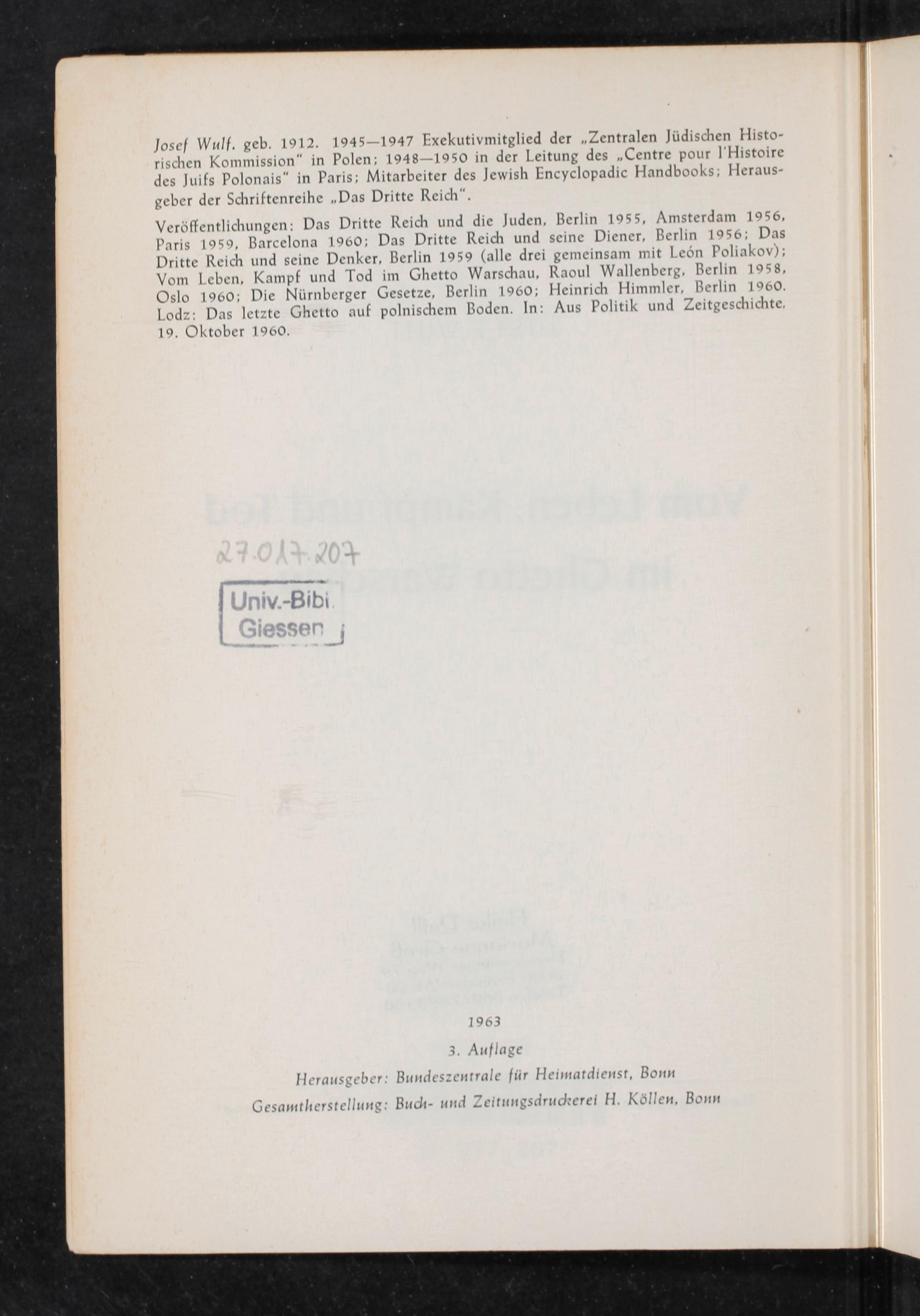 Vom Leben, Kampf und Tod im Ghetto Warschau / Josef Wulf