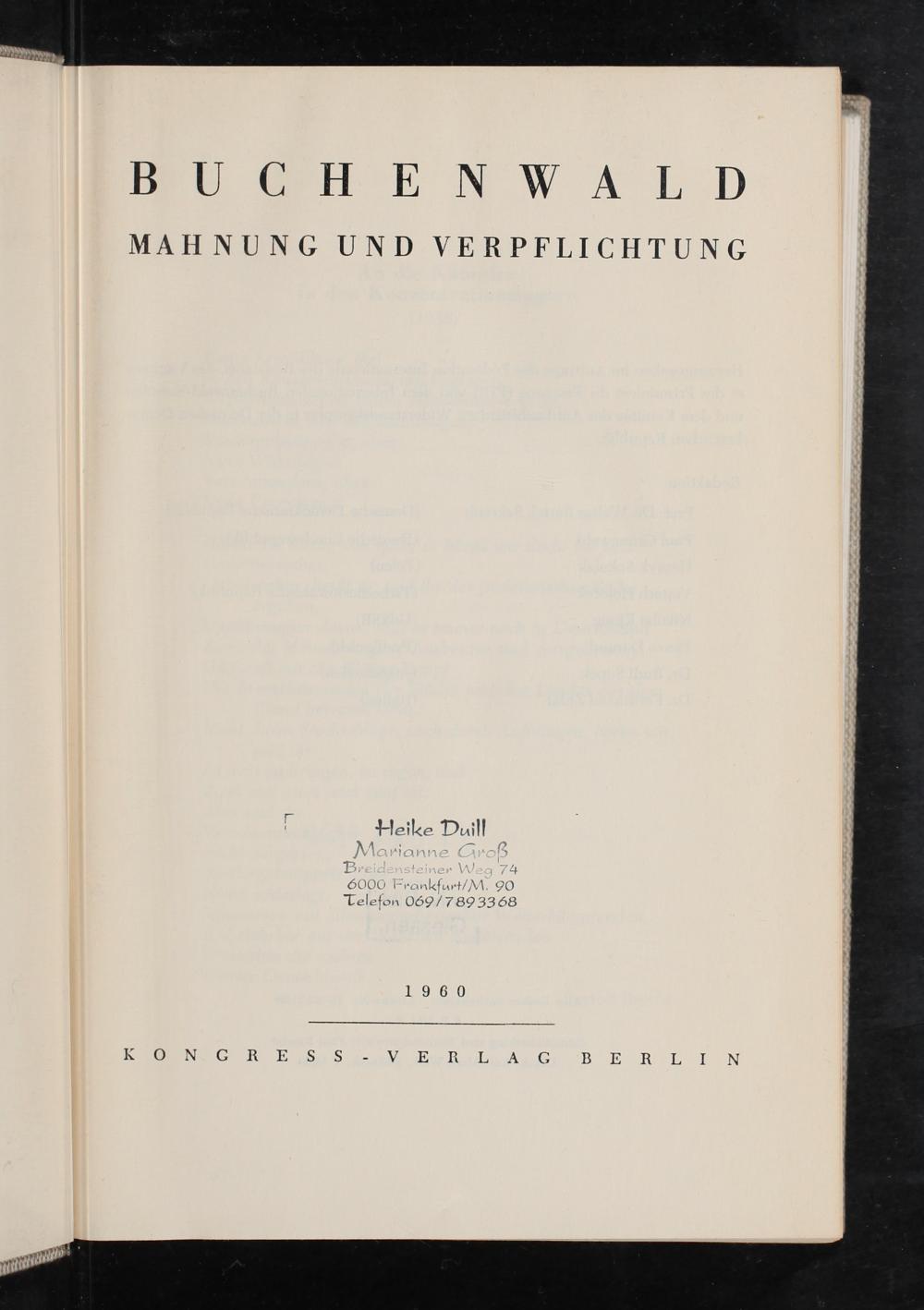 Buchenwald : Mahnung und Verpflichtung ; Dokumente und Berichte / herausgegeben von dem Inernationalen Buchenwald-Komitee .... Redaktion: Prof. Dr. Walter Bartel [und 7 weitere]