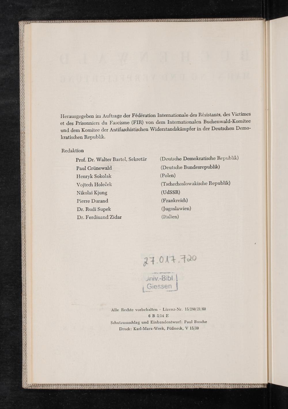 Buchenwald : Mahnung und Verpflichtung ; Dokumente und Berichte / herausgegeben von dem Inernationalen Buchenwald-Komitee .... Redaktion: Prof. Dr. Walter Bartel [und 7 weitere]