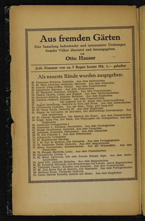 Jüdische Balladen / Josef Kiss ; aus dem Magyarischen übersetzt von Otto Hauser