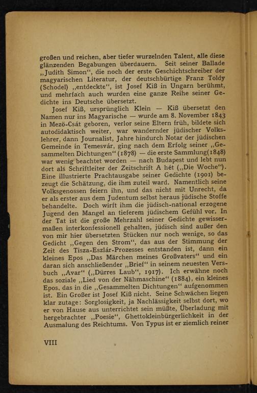 Jüdische Balladen / Josef Kiss ; aus dem Magyarischen übersetzt von Otto Hauser