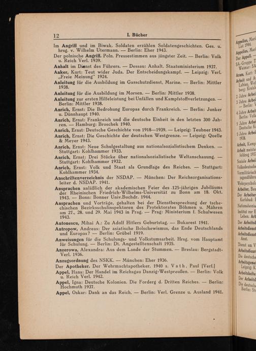 Anrich, Ernst: Deutsche Geschichte von 1918—1939.— Leipzig: Teubner 1943.