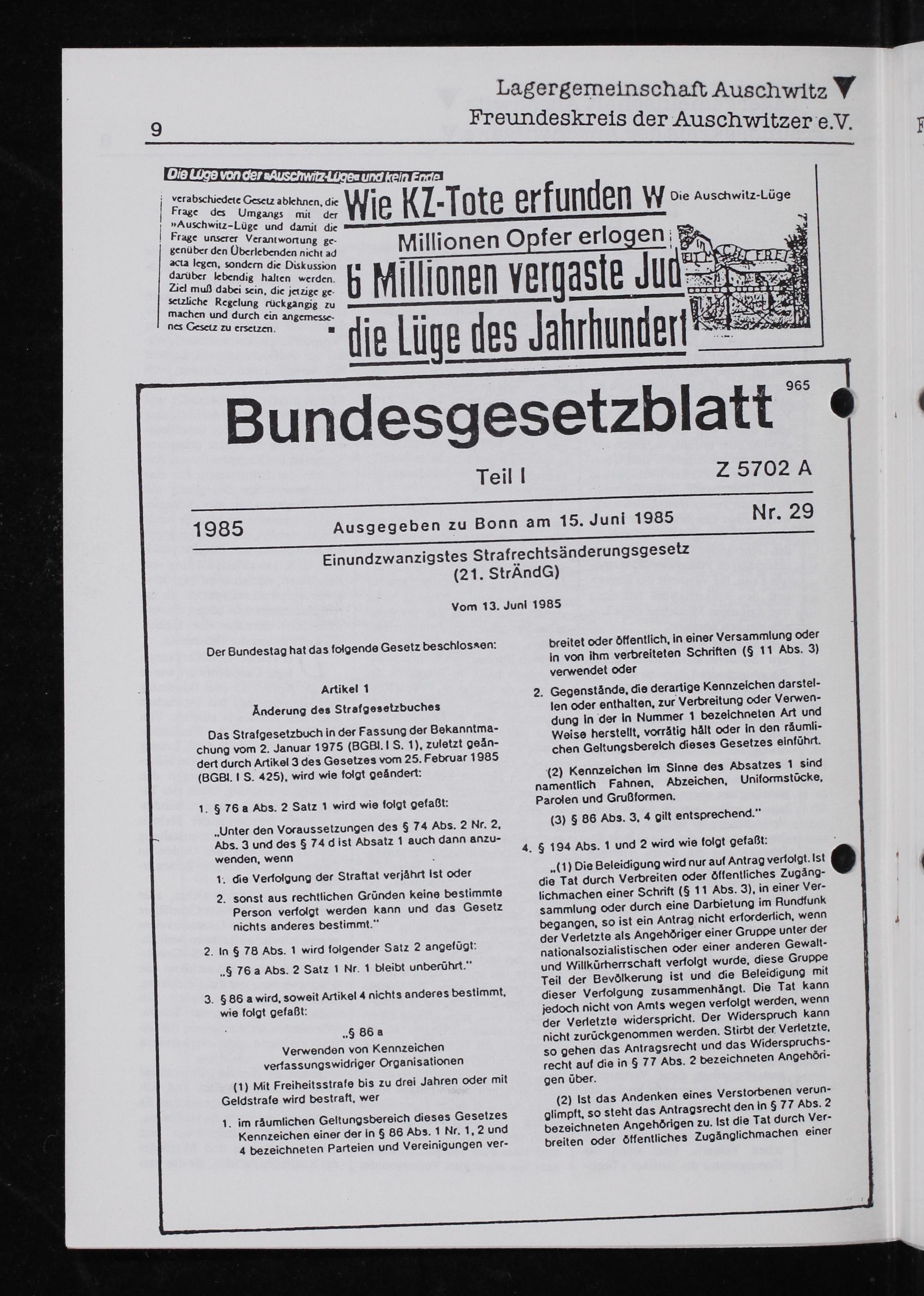 Der Bundestag hat das foigende Gesetz beschlossent breitet oder ðflentlich. in einer Versammlung oder in von ihm verbreiteten Schritten(5 11 Abs. 3) vervendet oder
