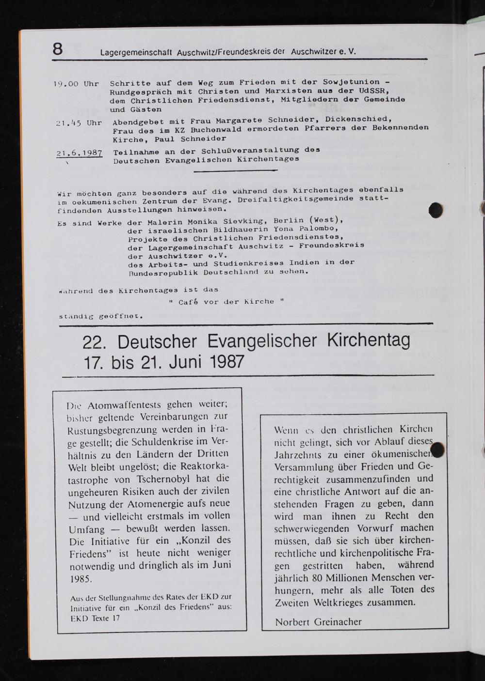 21.6.198 Tei Lnahme an der Schlußveranstaltung des N Doutschen Evange1ischen Kärchentages
