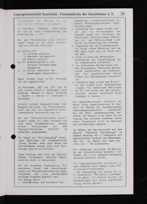 Die Lagergemeinschaft Auschwit?z“ 1St Seit längerer Zeit demüht, eine»Ver la gsarbeit“ aufzudauen.